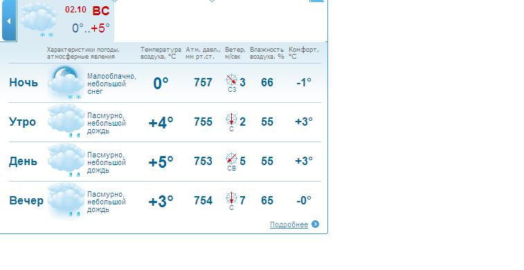 | Прогноз погоды на воскресенье 2 октября 2011